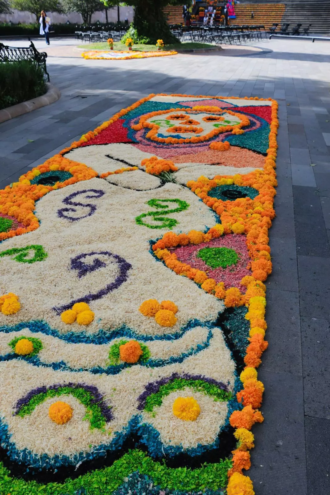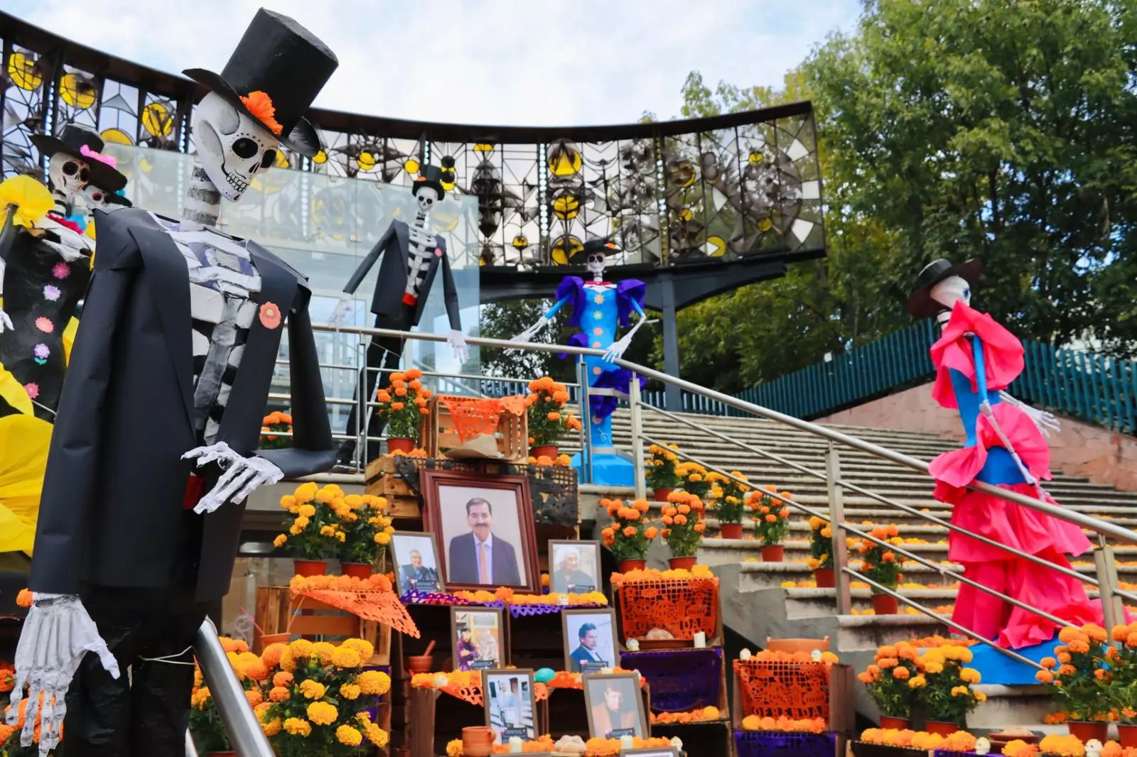 La Directora del DIF Municipal, Mitzia Peláez, agradeció la "contribución artística de las y los integrantes de los centros sociales y Casas de Día," destacando que su trabajo hizo posible el hermoso altar y la exposición de tapetes tradicionales.